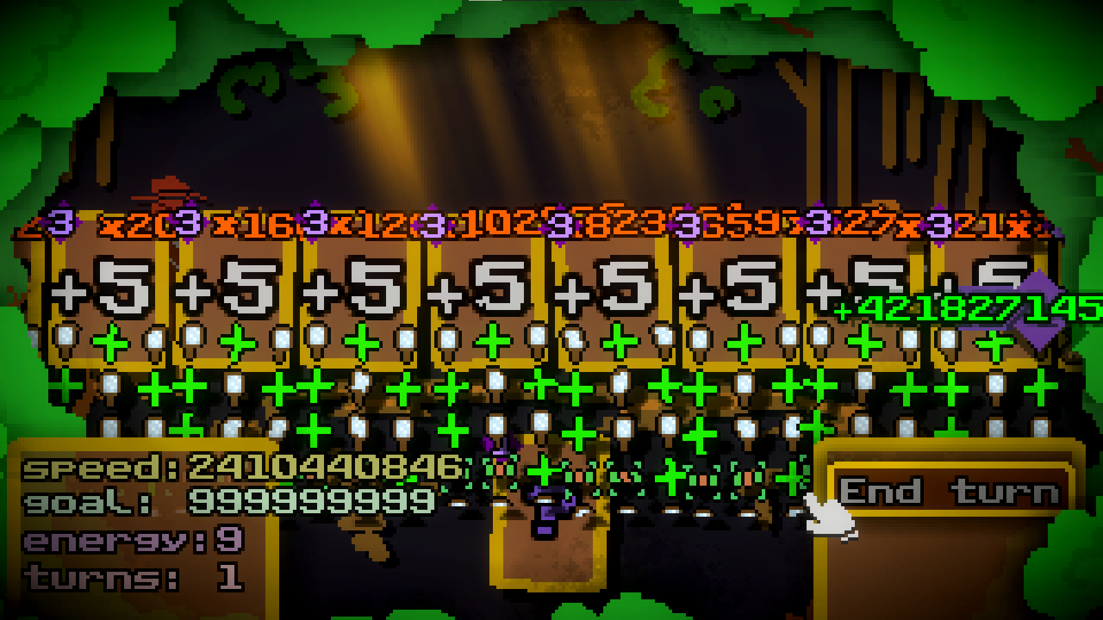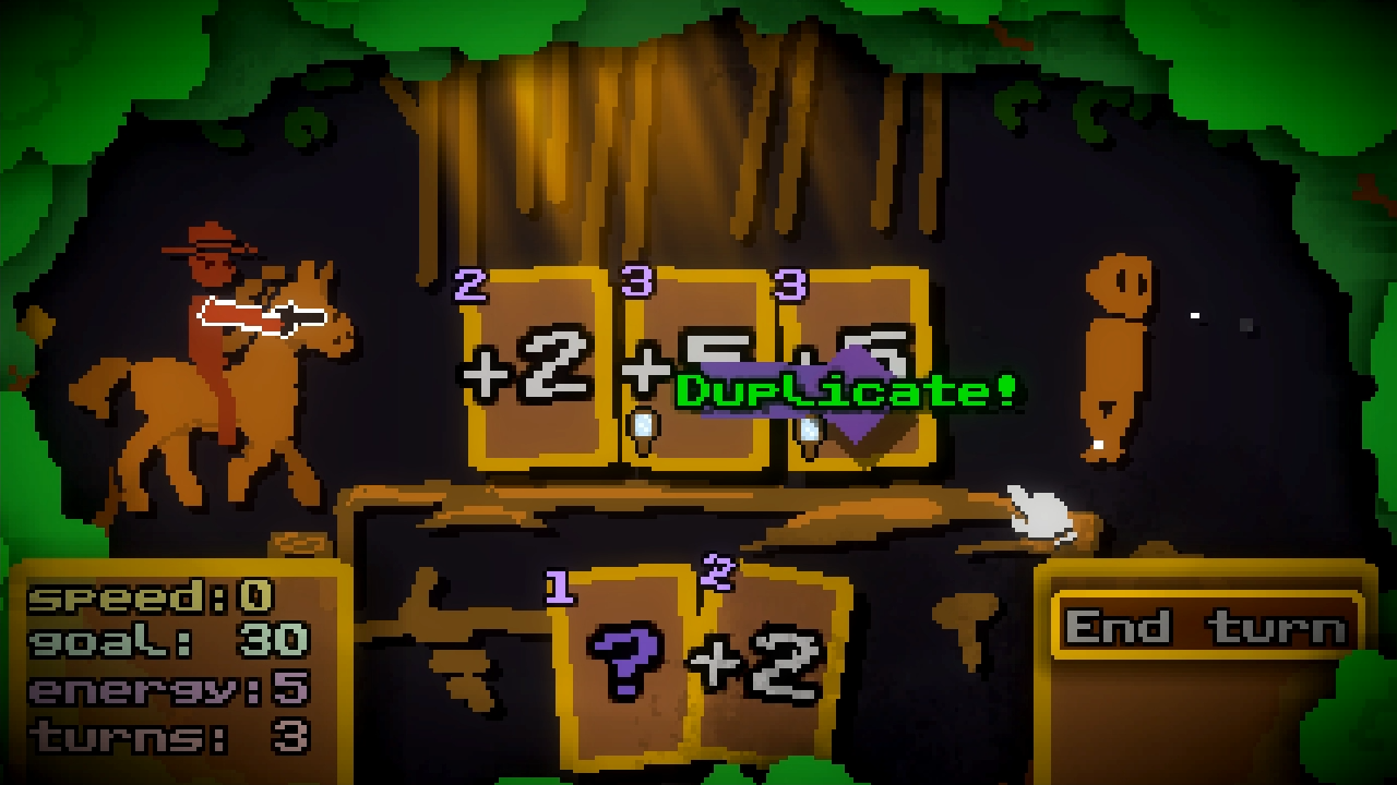 Find strange forest Marks - tiny bonuses you attach to your cards. Each Mark shapes your run in a different way: more speed, smarter positioning, risky multipliers!